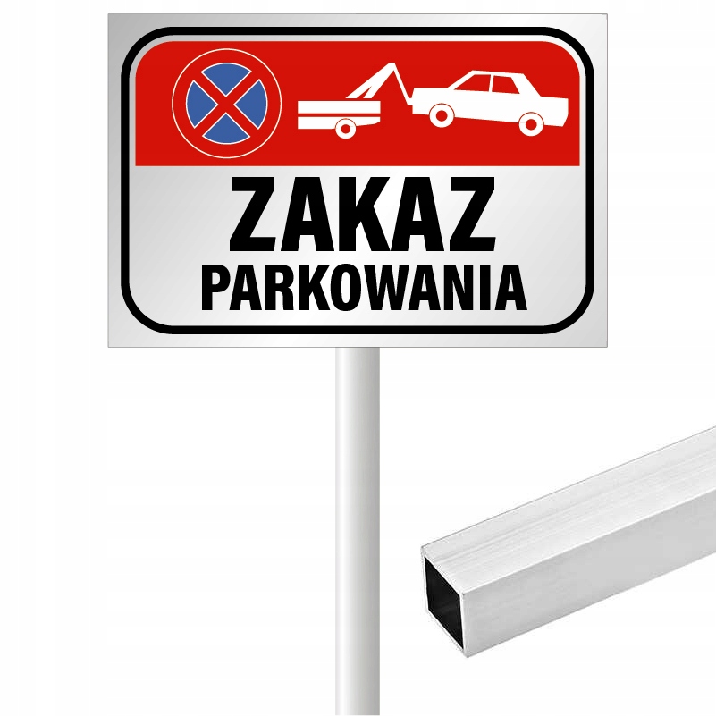 Tabliczka aluminiowa na słupku ZAKAZ PARKOWANIA odholowanie IDD