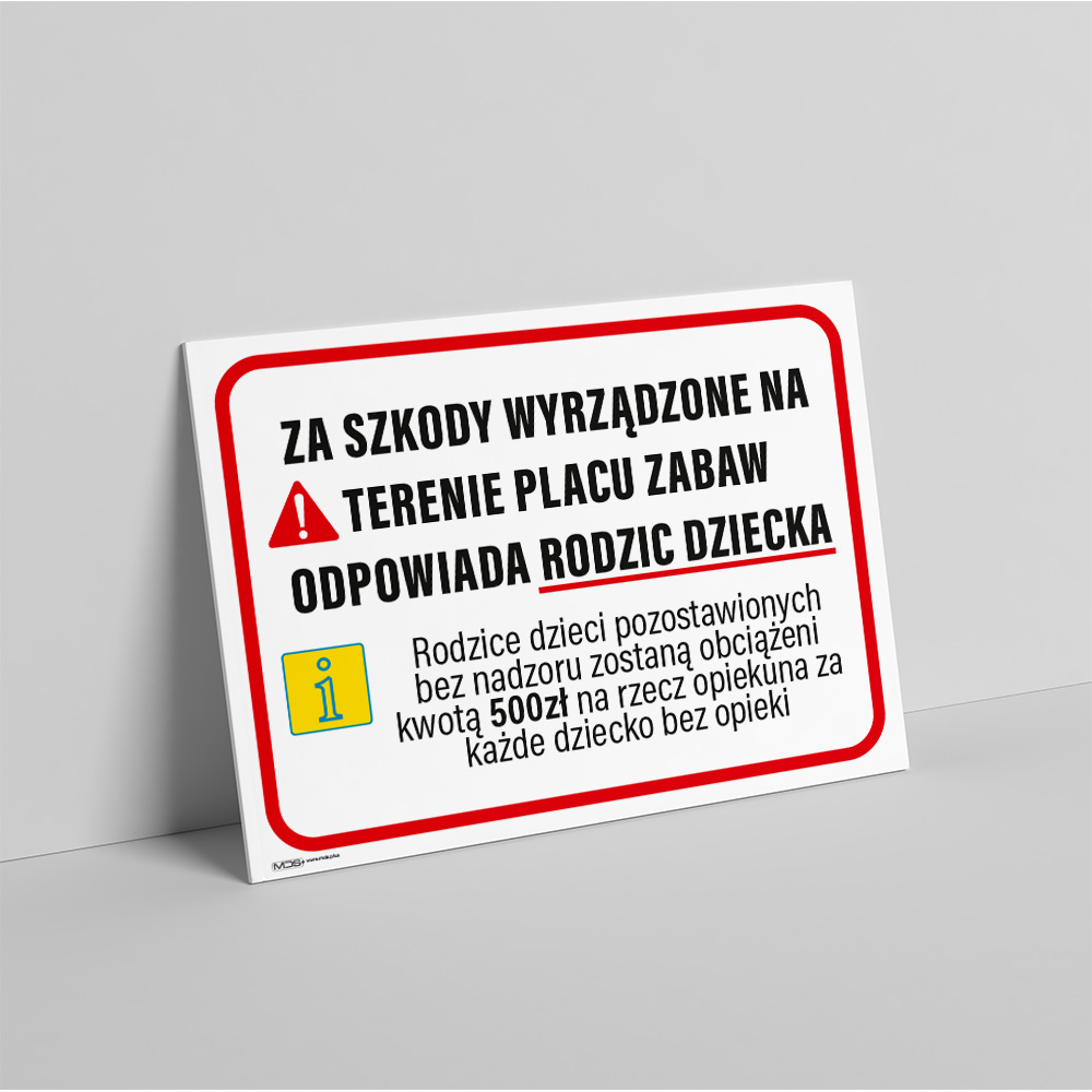 Tablica Informacyjna ‘Odpowiedzialność Rodzica na Placu Zabaw’
