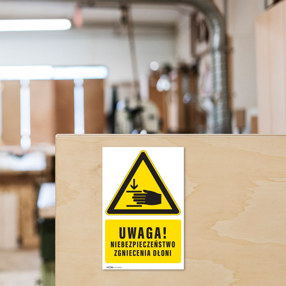 Tabliczka NIEBEZPIECZEŃSTWO ZGNIECENIA DŁONI